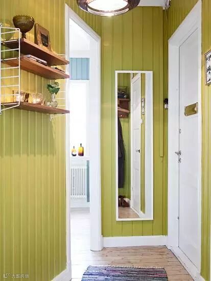 出门前换装总得看一下着装是否合适,走回卫生间或者梳妆台就会带入灰尘,所以玄关放一面镜子不可或缺。