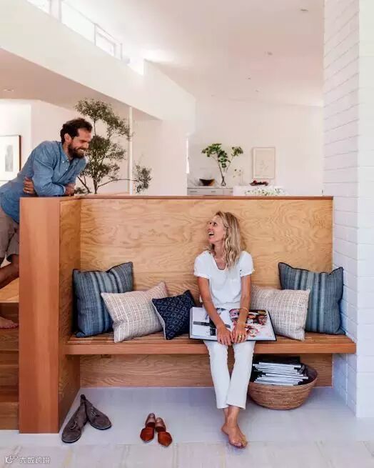 用卡座和靠包把玄关打造成一个舒适的小空间。▼