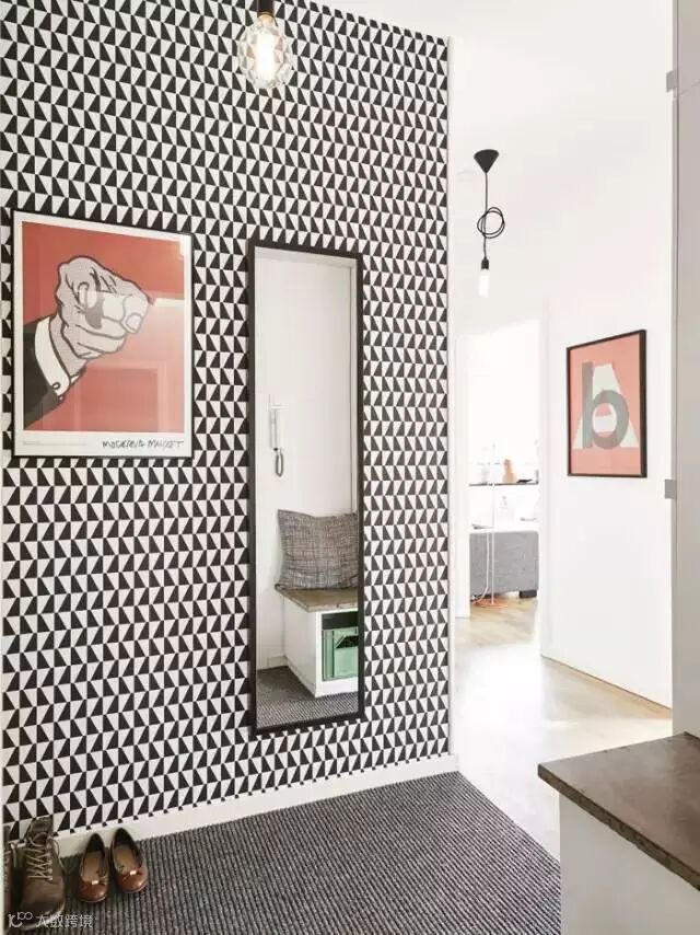 细线条长方镜+细方框挂画+几何纹壁纸,营造层次感。▼