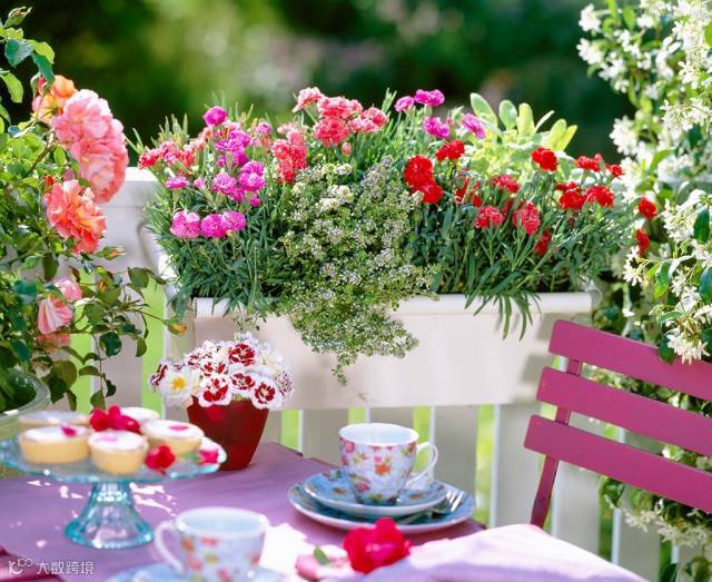 即便不能拥有绿意盎然的森林,却可以种出一个开满鲜花的阳台。阳台比较大,布局层次就要丰富一点,有花、有草、有小径,这样视觉效果更饱满。阳台太小,就尽量考虑用盆栽,或是在阳台边缘用花槽砌成狭长的花草带,种一些低矮的植物。在小阳台周遭布满美丽的绿植,绿叶葱茏,繁花似锦。