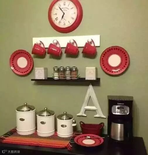 红色的时钟、红色的杯具、再配上渐变色的餐垫,这个吧台亮眼又大气!
