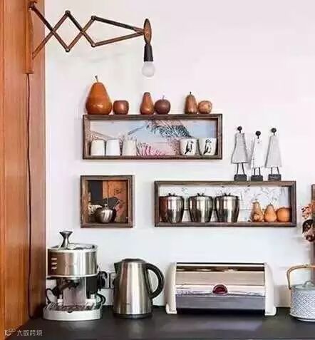 一平米以内的空间确实不大,但只要好好利用,也是可以有不一样的感觉。再买些IKEA的支架,把空间充实起来,一个美美的吧台就出现啦!