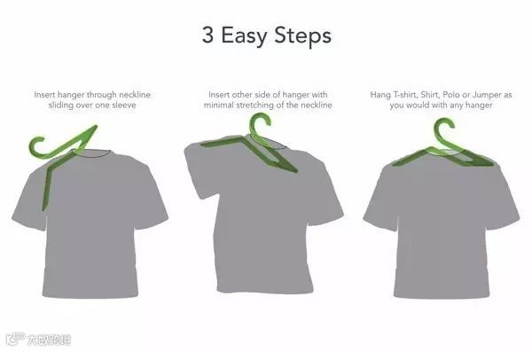 大家挂衣服的时候应该都遭遇过T恤的领子必须得用衣架硬挂进去,这样会撑大衣服的领子,这款衣架就可以很轻易的将衣服挂进去。