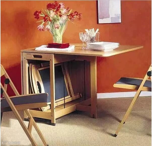 导读:两边都可展开的折叠桌 收起的时候,椅子也可以放进去!