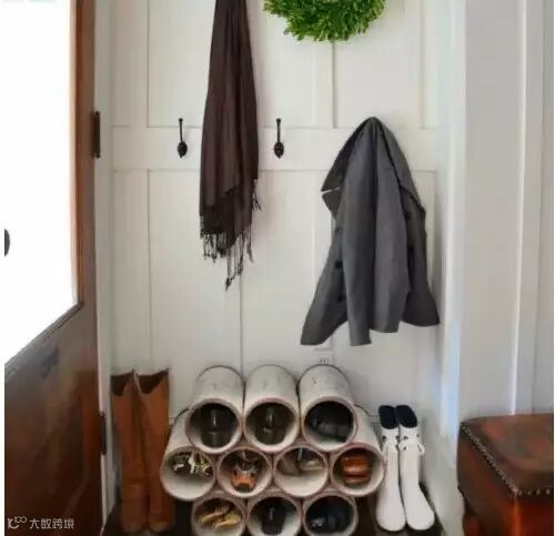 看出来了吗,其实就是普通的pvc管,没想到还能做成鞋架吧~
