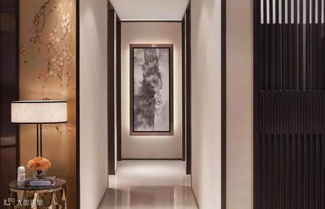走廊镜头一幅泼墨山水画装饰了空间,又表达了对新中式风格的崇高致意。