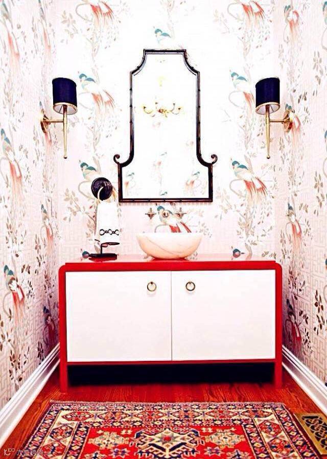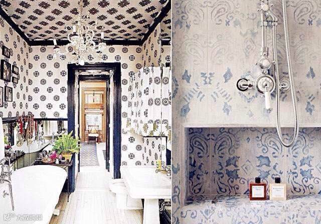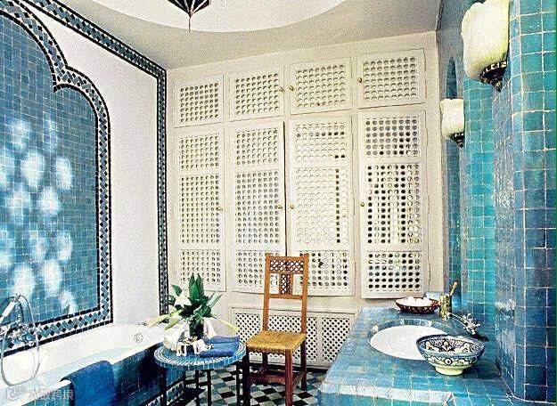 用异域风格的瓷砖、地毯和镜框配饰,很容易就能打造出一个异域感的浴室。