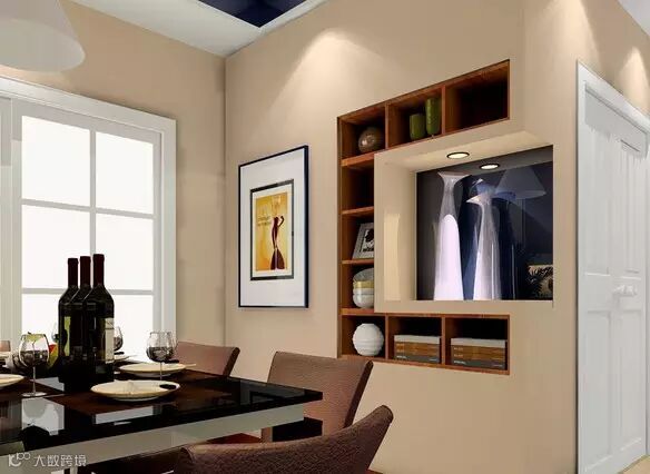 ▲小餐厅的墙面怎样才不单调?内嵌式的装饰柜别有一番情调。