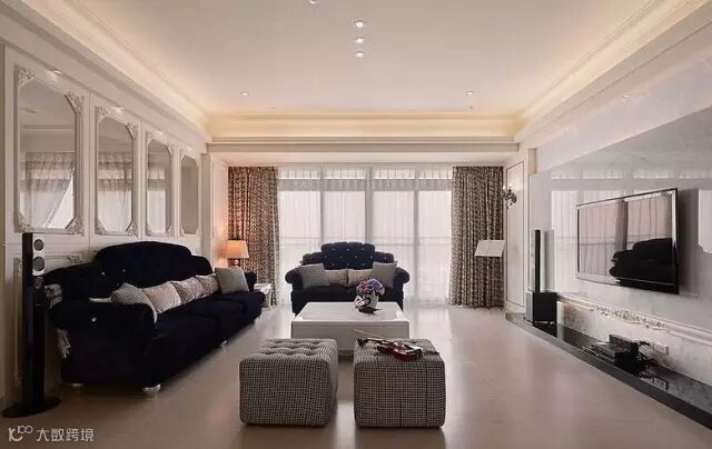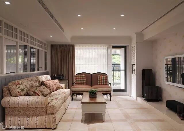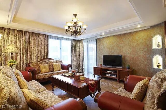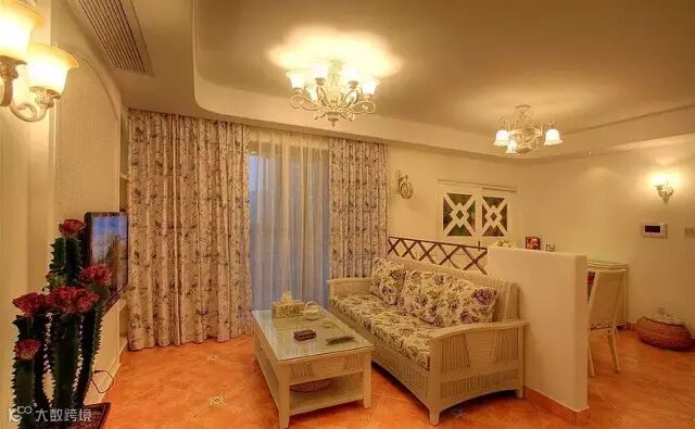 ▲闭合性的客厅,美式风格讲的是奢华,在窗帘布艺上花点小心思,碎花能让客厅变成有气质的”壕“