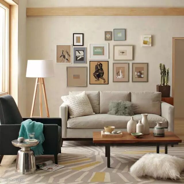 客厅能进行改造的地方有很多,壁画、橱柜收纳、沙发抱枕、地毯、窗帘阳台或者只是茶几……
