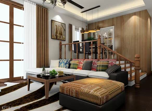 ▲客厅比较宽敞,沙发后面的位置不想空着,又不想摆放笨重的储物柜,可以用梯台营造一个小区域,让空间更有层次感。