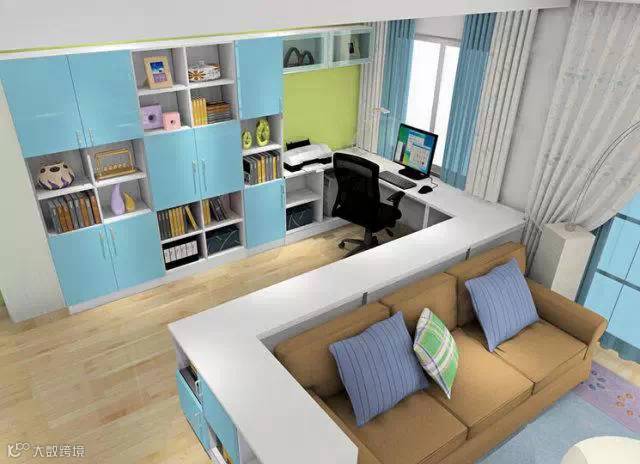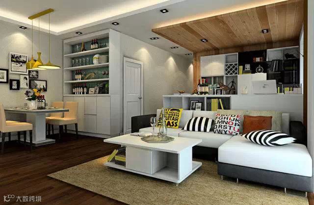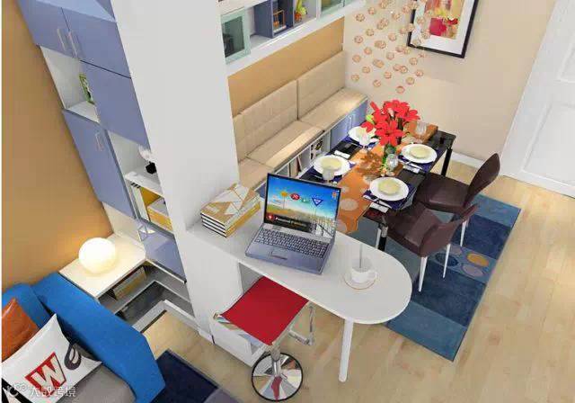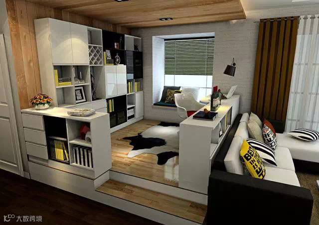 书柜延伸出一个吧台,既可以作为休闲吧台,