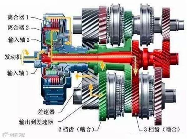 从双离合变速箱的工作原理来讲,双离合就像由两套手动变速箱组成,两个离合器分别控制两套齿轮与发动机的连接与断开,当转速到达换挡速度的时候第一个离合器分离,升档预位离合器同时结合,从而达到无间歇换挡。