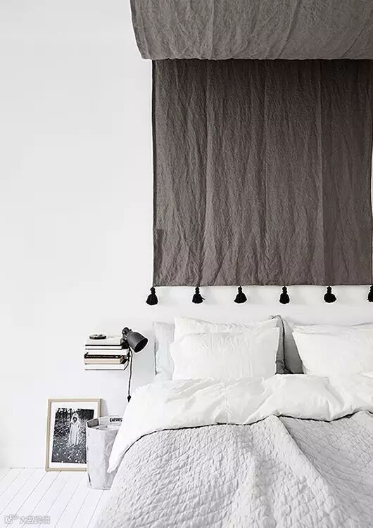 挂块布饰从天花延伸到床头。
