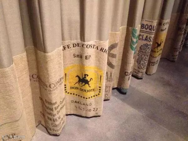 原本朋友的小成本咖啡馆就这么装修的,拿咖啡袋当墙纸