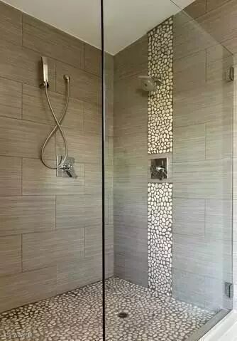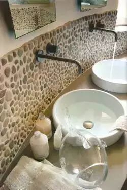 做半墙或是腰线也很有感觉,比腰线砖便宜得多。要知道瓷砖越小越考验泥水师傅的工艺,而鹅卵石却不用考虑这事,因为鹅卵石不要求对齐,越随意越有原生态的感觉。