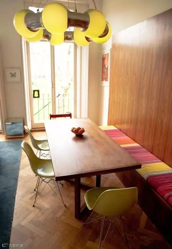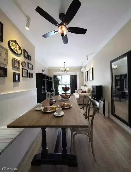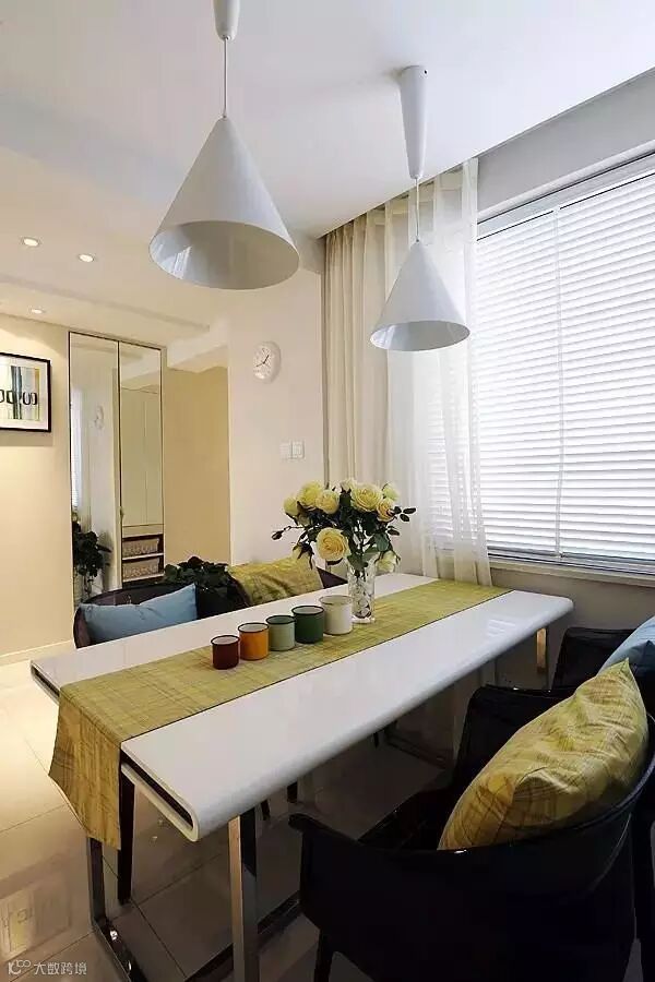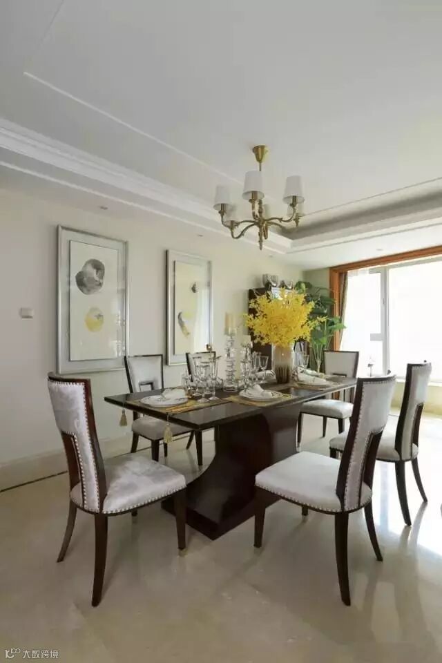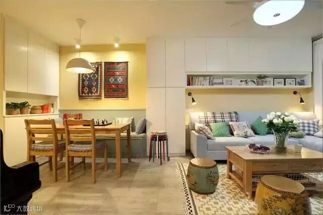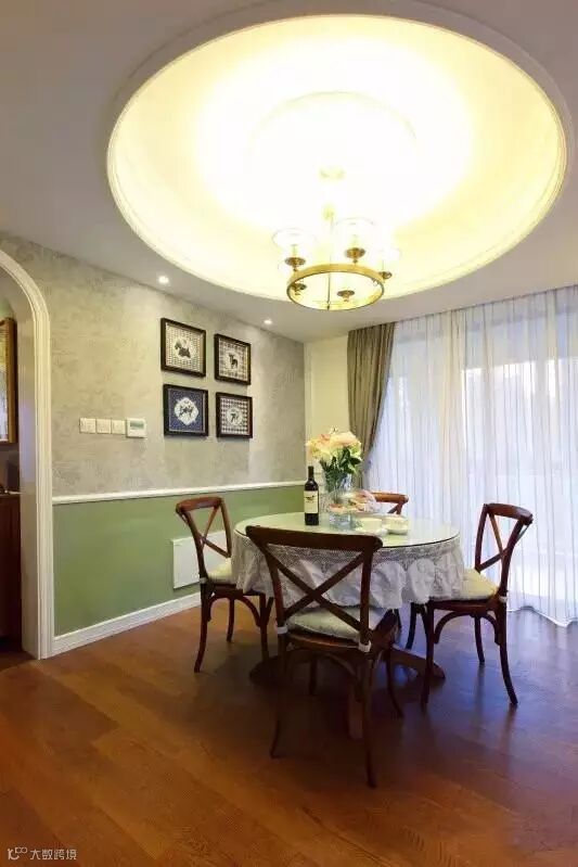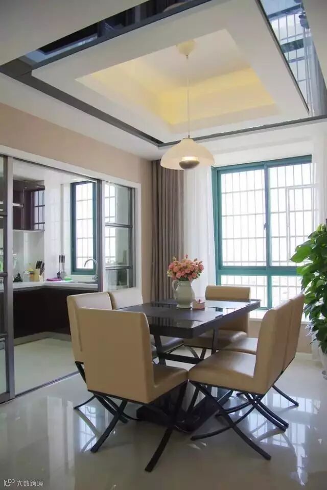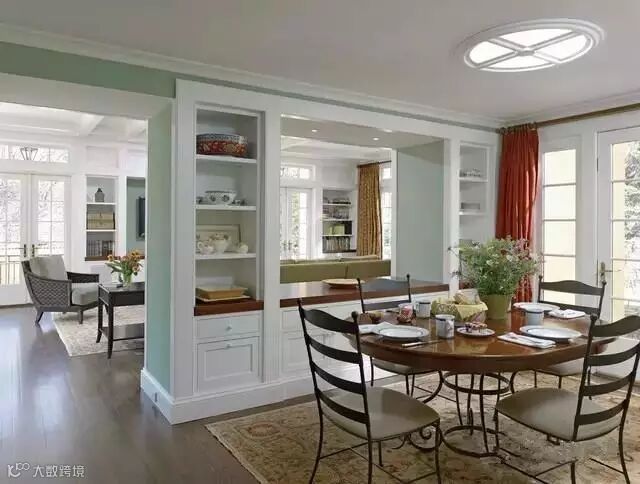 餐厅作为一家人共同用餐的地方,在空间允许的情况下,最好是单独辟出一个独立的区域做餐厅。但很多中国人的房间没有独立的用餐区域,餐厅可能会与客厅直接相连,小编在之前的文章中写过如何解决客餐厅一体化的问题。在这种情况下,通过吊顶、吊灯可以人为地划分出一个相对独立的就餐区。此外通过地毯或铺设不同颜色、材质的地砖,在视觉上也可以把就餐区与客厅区分开。
