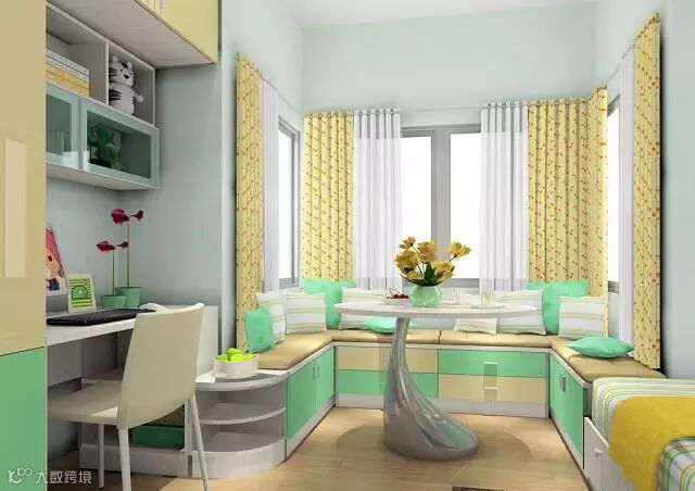 3、低矮、宽敞的窗台小孩子会比较喜欢攀爬,所以一般儿童房不建议采用飘窗设计。如果有飘窗,那么需要家长要做好防护措施,平时也要加强对孩子的看护。