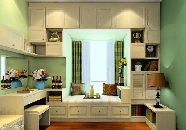 2、飘窗面积不是很大的话栽一些植物花卉做个小花园;如果飘窗不大,窗台离地又较高,则最适合改造成功能型的使用空间;