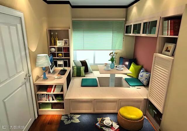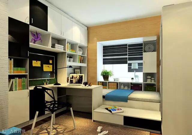 书房的飘窗与榻榻米是绝搭,这样的设计分分钟可以多出N间房。书房+厕所+储藏室+会客厅+休息区,各种功能都集齐一身。