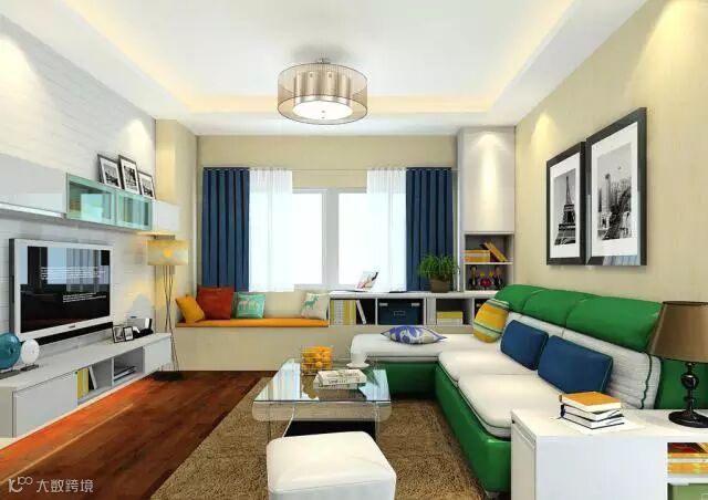 利用好客厅的飘窗处,增加卡座和储物柜功能。客人来了,就多了一处可以休闲的地方,储物柜更是解决了客厅收纳问题。
