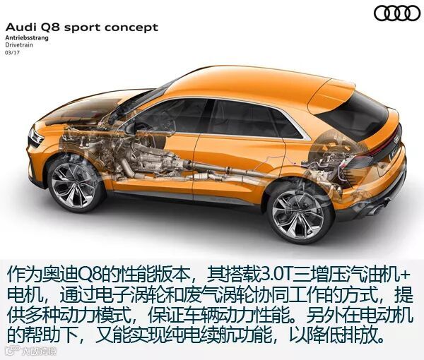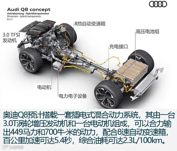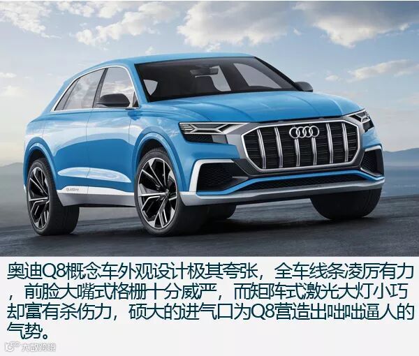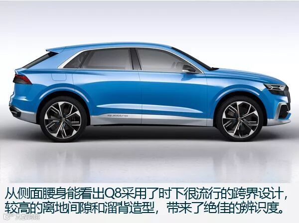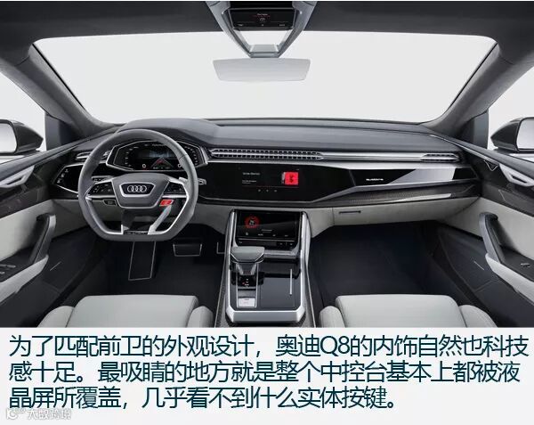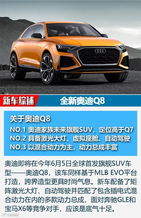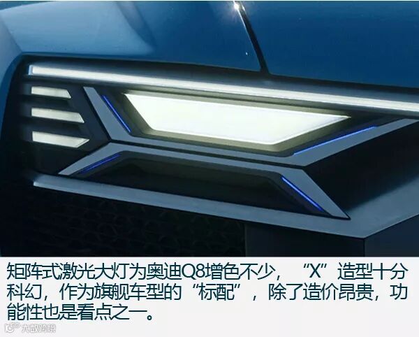 总结:作为奥迪旗下SUV谱系的新产物,奥迪Q8延续了品牌崇尚科技的特质,无论是激光大灯还是自动驾驶,又或是虚拟座舱概念都让你对Q8有着科技上的隔阂感。虽然同样基于大众MLB EVO平台开发,但是奥迪Q8的定位更加精准,走跨界路线,向老对手(奔驰、宝马)亮剑,并且选择在中国首发,重视国内消费市场,这样的做法令人肯定。