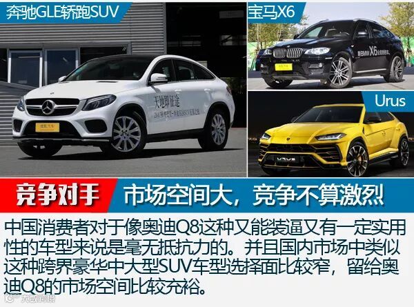 俗话说的好,一个巴掌拍不响,有人愿打,就一定有人愿挨。中国消费者对于像奥迪Q8这种又能装逼又有一定实用性的车型来说是毫无抵抗力的。并且国内市场中类似这种跨界豪华中大型SUV车型选择面比较窄,留给奥迪Q8的市场空间比较充裕。就拿奔驰GLE轿跑SUV和宝马X6来说,即便已经进入产品中期,但每个月都有几百辆的销量,这么大的一块蛋糕,奥迪怎么能忍得住不抢。