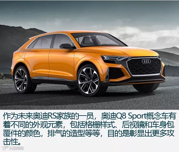作为奥迪旗下的当家SUV产品,奥迪Q8的概念车早已在各大车展抛头露面,其中奥迪Q8概念车量产后将成为普通版车型,而奥迪Q8 Sport概念车有望成为奥迪RS家族成员。两者之间的差距便是外观和动力部分。