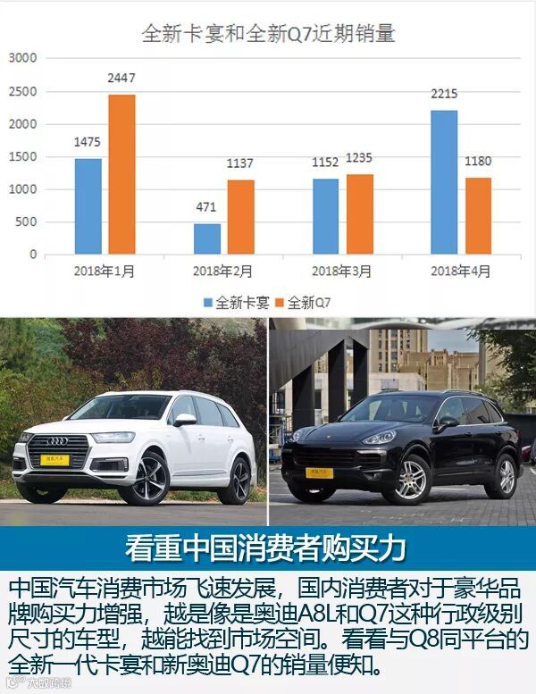 随着中国汽车消费市场的飞速发展,豪华品牌的受众群体已经呈现指数增长,因此越来越多的豪华或者超豪华品牌愿意在中国首发旗舰产品,冲的就是咱们中国人的购买力。而且越是像是奥迪A8L和Q7这种行政级别尺寸的车型,越能在中国找到自己的位置,完全不用担心会冷场,同样基于MLB EVO平台的全新一代卡宴和新奥迪Q7已经证明了这一点。