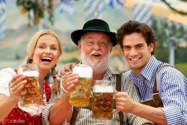 德国父亲喝啤酒庆祝