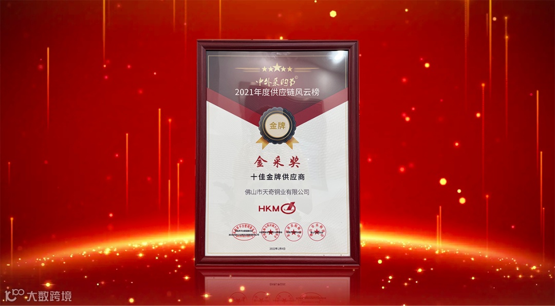 除了精彩纷呈的主题分享及风云对话外,本次采购节还进行了“金采奖”颁奖典礼暨2021供应链年度风云榜颁奖仪式,天奇铜业凭借着行业领先的综合实力、高标准的产品质量、全面贴心的优质服务和过硬的供应链实力一举荣获“十佳金牌供应商”和“金牌单位”称号,这也是对天奇铜业品牌及口碑力量的充分认可与印证。