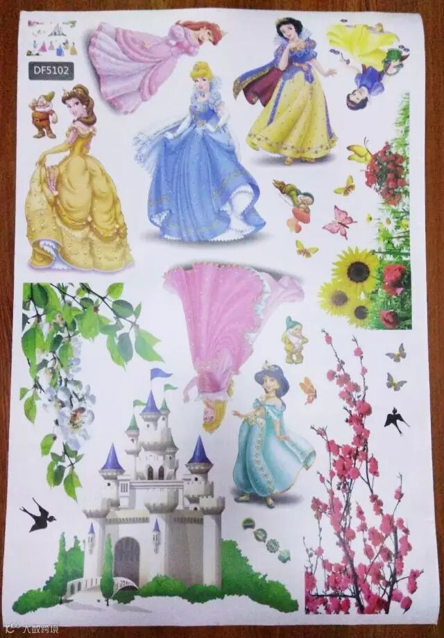 某宝的装饰贴,粗看没有发现什么大问题(除了像素模糊之外),但是那个梅花,向日葵,九里香,这三种不同季节的花为什么要放在同一画面里呢?设计师你确定这些公主们不会被你折磨地感冒吗!!还有为什么要放梅花(这么有中国情结的花),难道你是想表达西方迪士尼文化和中国文化的大结合吗?公主们和这些花根本就不搭啊~~设计师,你出来,我们好好交流一下~我保证不动手~