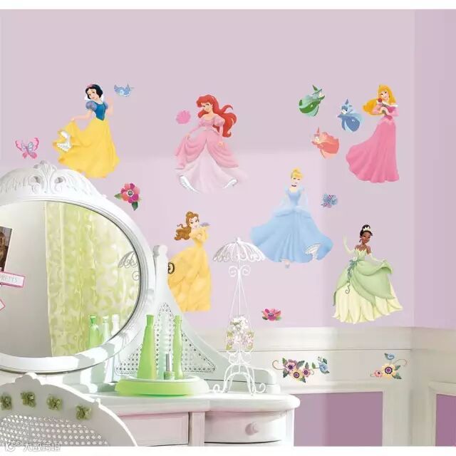 RoomMates的迪士尼公主们像素高,设计感强~每个公主都是精心挑选的,周围的小花蝴蝶等图案和公主们的画风统一协调的。