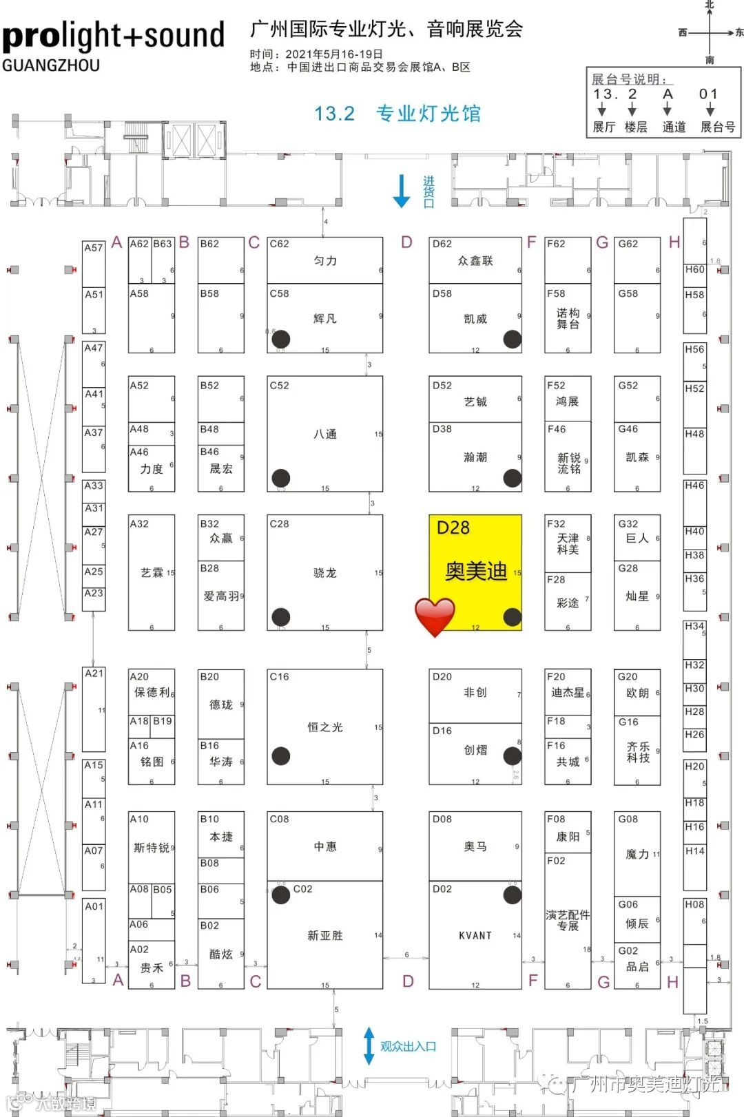 奥美迪灯光展位号:二楼13号馆13.2-D28