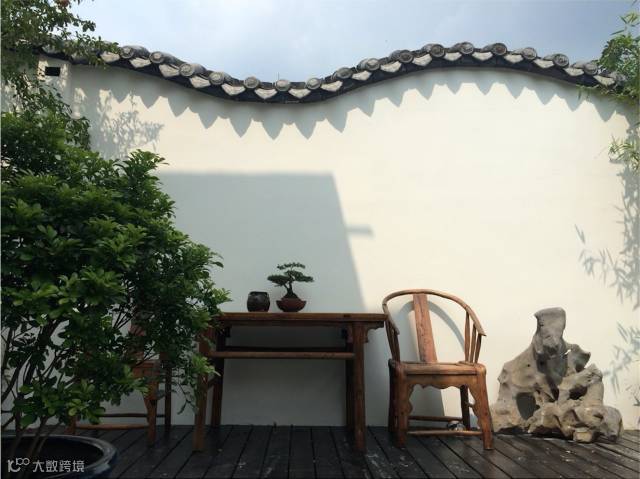 改造后,借用了徽派建筑白墙灰瓦的元素,也有苏式园林移步换景的情趣。再摆上从各地收来的旧时水缸、太湖石、明式家具,很适合喝茶晒太阳。