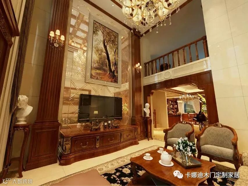 客厅采光要好,落地窗让阳光肆意挥洒进来。抬头仰望,大气沉稳。