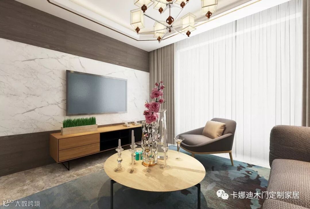 木门以乳白色,淡白色为主色调。个性迷人、张弛有度。浅淡色墙壁纸与全屋色系相间,不经意间透露出时尚品味。简单不复杂随意摆放,靓丽的黑色点缀其中,打造摩登时尚的现代化客厅。