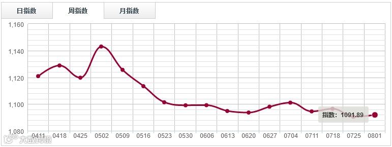 三大市场中,四川大西南和上海福人本周指数跌幅较大,下滑了2.15%、0.78%,广东鱼珠市场本周指数上涨1.54%,对大盘起到了一定的托底作用。