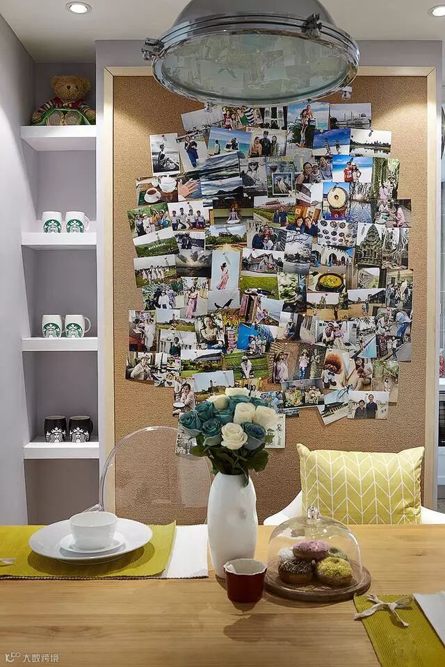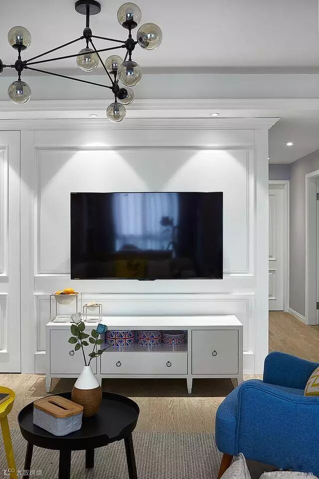 家里面积小,电视背景墙没有用墙砖,用的是木板做隔断。