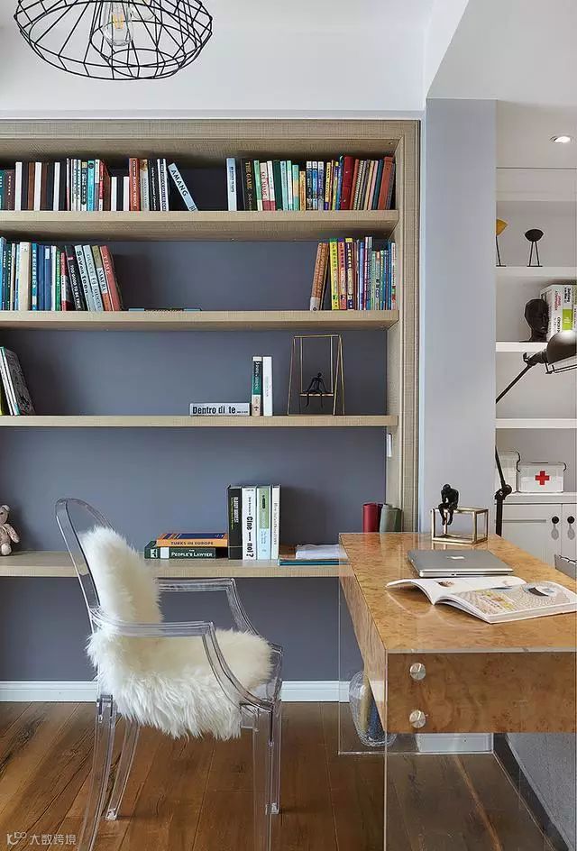 在客厅就能看到书房、餐厅,开放式显空旷。