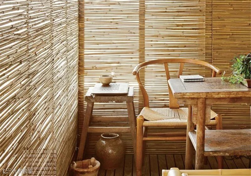 他阳台挂着细密的竹帘,一眼望去,影影绰绰。看似简约,内质清爽,彰显出这一位收藏家的审美和性情。