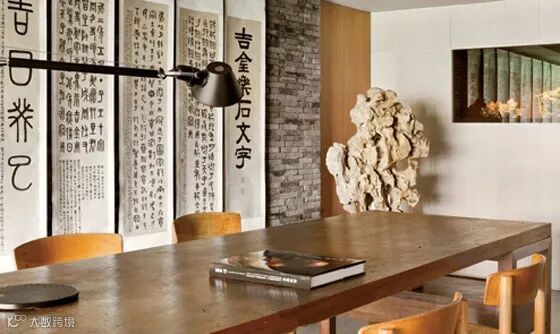 台湾的收藏家黄玄龙就用少量的明代家具,搭配现代家居,并辅以大量的留白,以字画作为点缀,打造出一个简约、清爽的中式风格的家居。