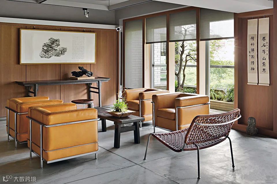 他的客厅就用柯布西耶沙发和中式家具搭配,丝毫不显突兀,反而衬出一屋子静雅之气。