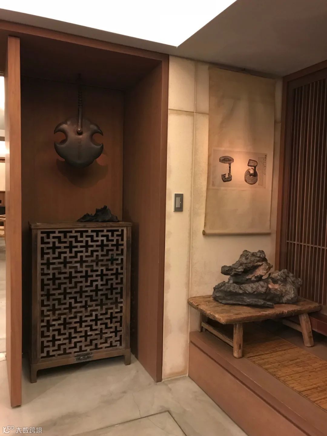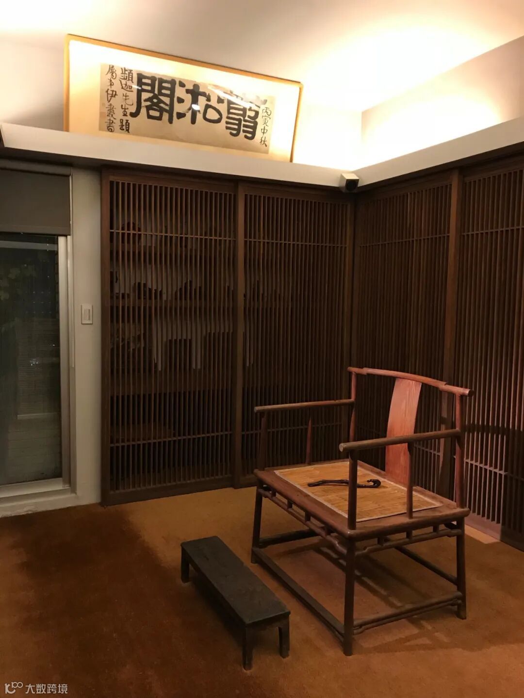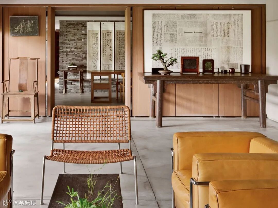 迎接访客的二十平大厅,只有四件中式骨董家具,和两张现代主义的经典椅,整个空间约有八成是留白的。