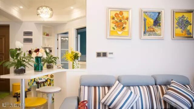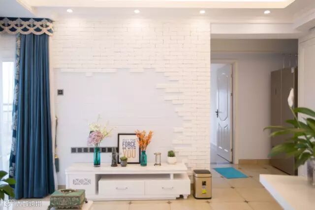 ▲电视背景墙采用了文化石做装饰,不规则的图形加上花束的搭配,文艺气息扑面而来餐厅。