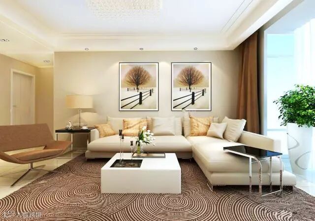 ◆如果空间的色彩上单调,可以选择一些色彩明艳的挂画或软装,能够让客厅的氛围更加轻松一些,提亮空间,当然绿植也是很好的选择哦!