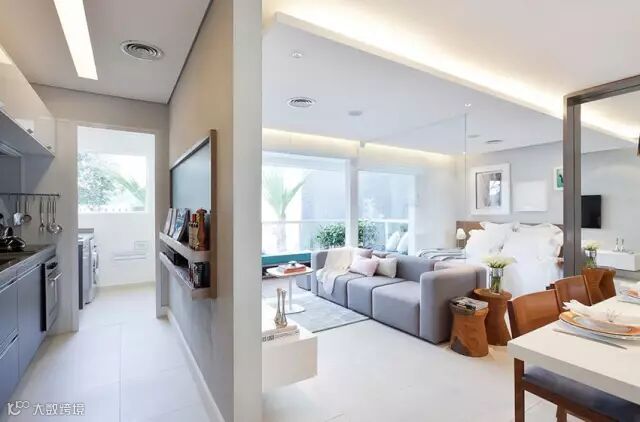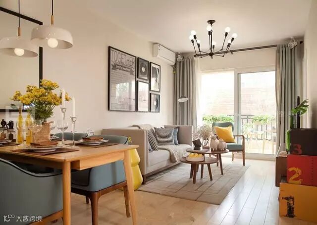 ◆减少屋内实体墙的分区隔断,可设置成客厅、餐厅的一体化通透空间,可以使用玻璃、窗帘、镂空材料,让空间被合理地分隔开,也不会把光挡住。