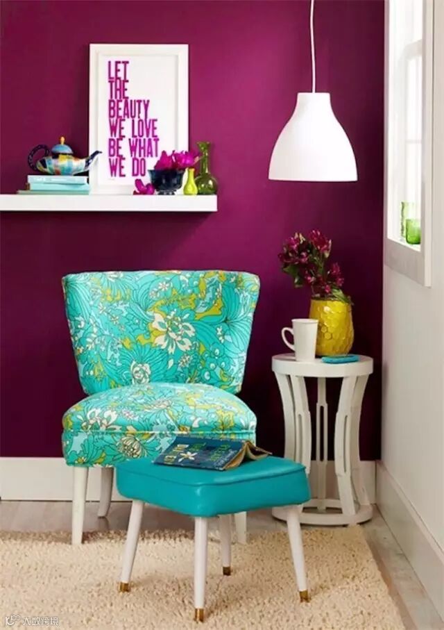 由于颜色的饱和度较高,充满了活力,所以在家装中也可以运用一个抱枕或是小家具来点缀房间。