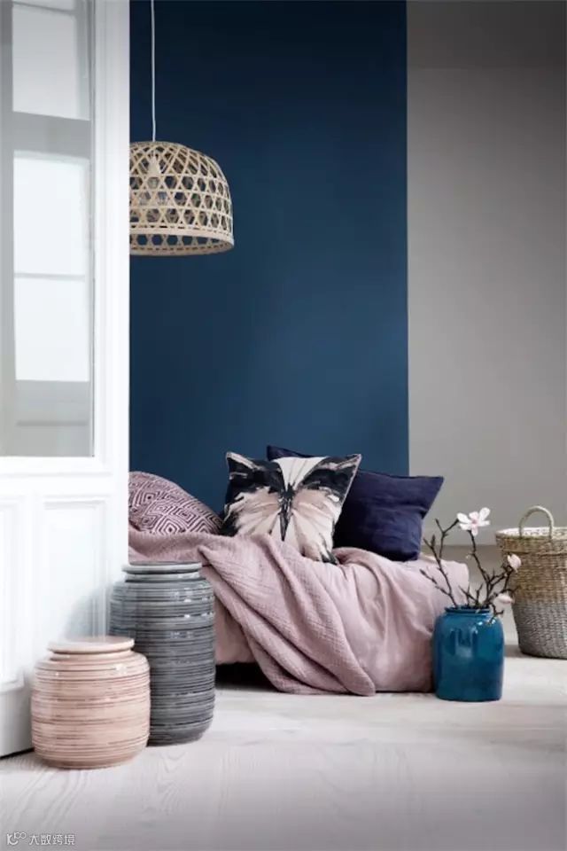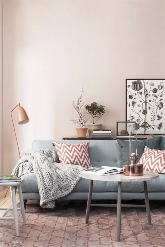 玫瑰色作为热门色不仅在家装上,连彩妆都常看到它的身影。玫瑰色非常的温柔,混合上述提到的灰色,你会拥有一个舒适又非常别致的家居空间。
