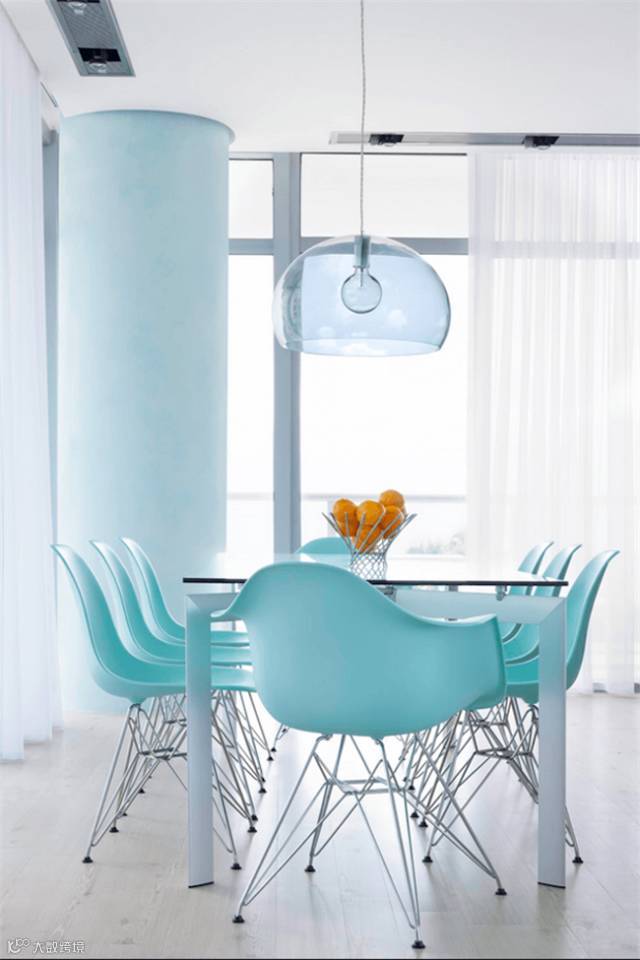 属于小清新的颜色,与之搭配白色的家装,可以让整体家居变的年轻,透亮。